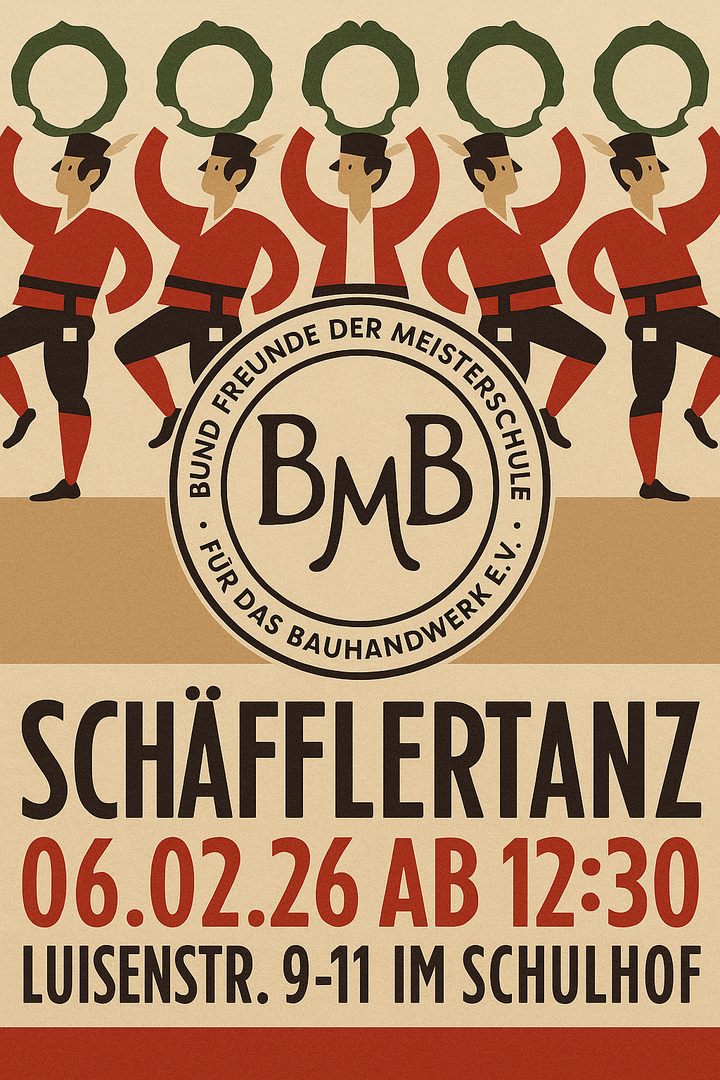 der BMB bietet am Samstag den 31.01.2026 in Zusammenarbeit mit der Städt. Fachschule für Bautechnik und der Bauinnung München wieder eine Fortbildung an. Sie dient lauter der Verordnung über den Erwerb der Zusatzqualifikation für die Absolventen der Zusatzqualifikation auch zum Erhalt der Berechtigung für die Erstellung der Bautechnischen Nachweise gemäß BayBO.